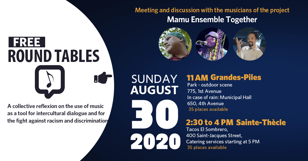 As part of the Mamu Ensemble Together project, La Boîte interculturelle is happy to bring to the Mekinac Regional County Municipality intercultural round tables with Shauit, Lasso and Saulo. Together, we will exchange and discuss about issues related to the promotion of multiculturalism and the fight against racism.