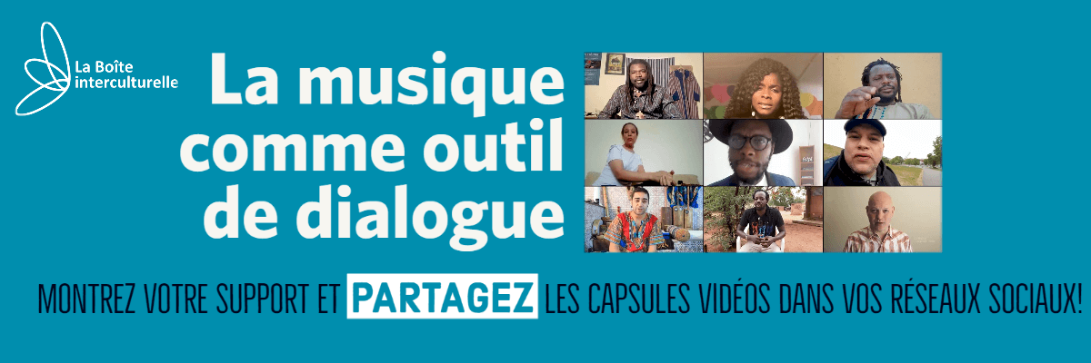 Du 2 juin au 19 juillet, La Boîte interculturelle diffusait en simultané sur Facebook, Twitter, YouTube et site Web, des messages portant sur l’importance de la musique comme outil de dialogue dans la promotion du multiculturalisme et la lutte contre le racisme.