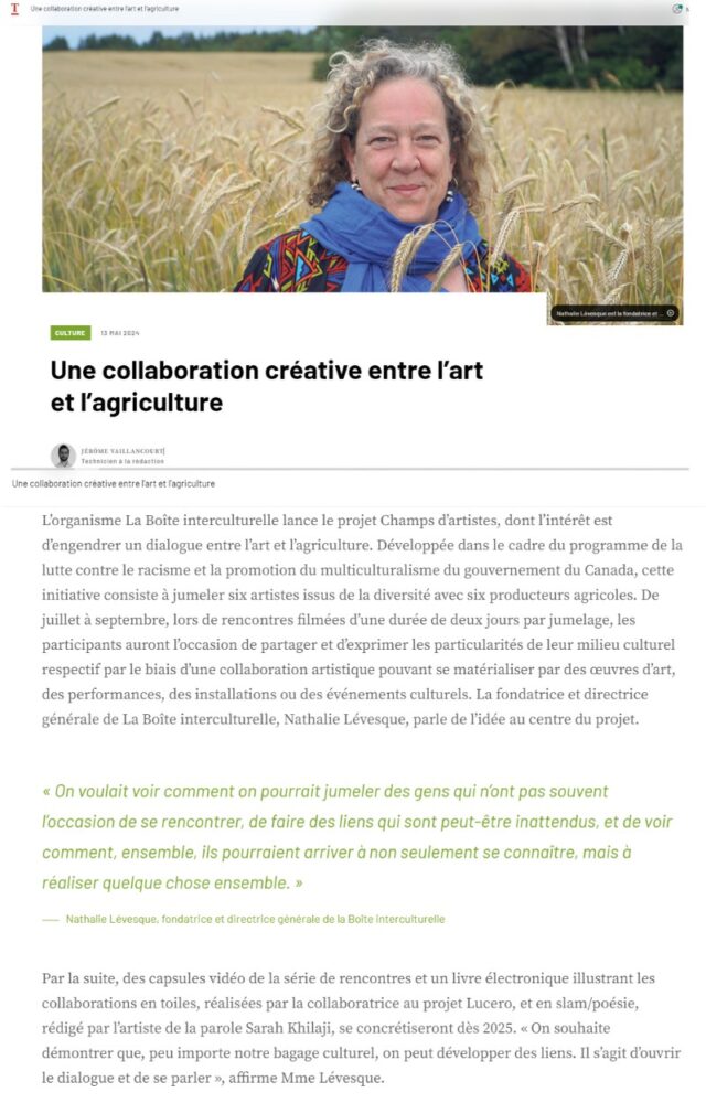 - Une collaboration créative entre l’art et l’agriculture, La Terre de Chez-Nous, 13 mai 2024