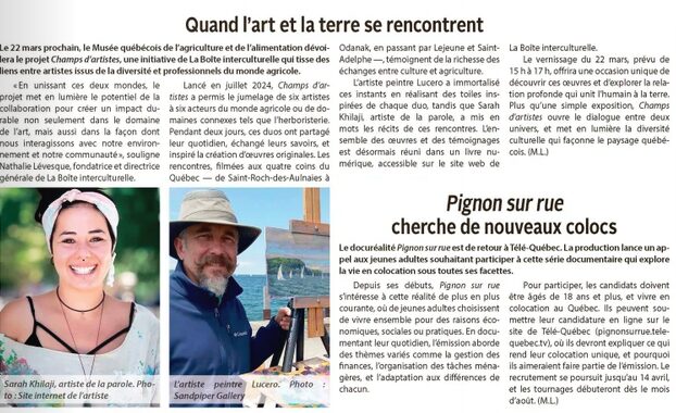 - Champs d’artistes : des rencontres inattendues en milieu rural, La Gazette de la Mauricie, 5 juin 2024