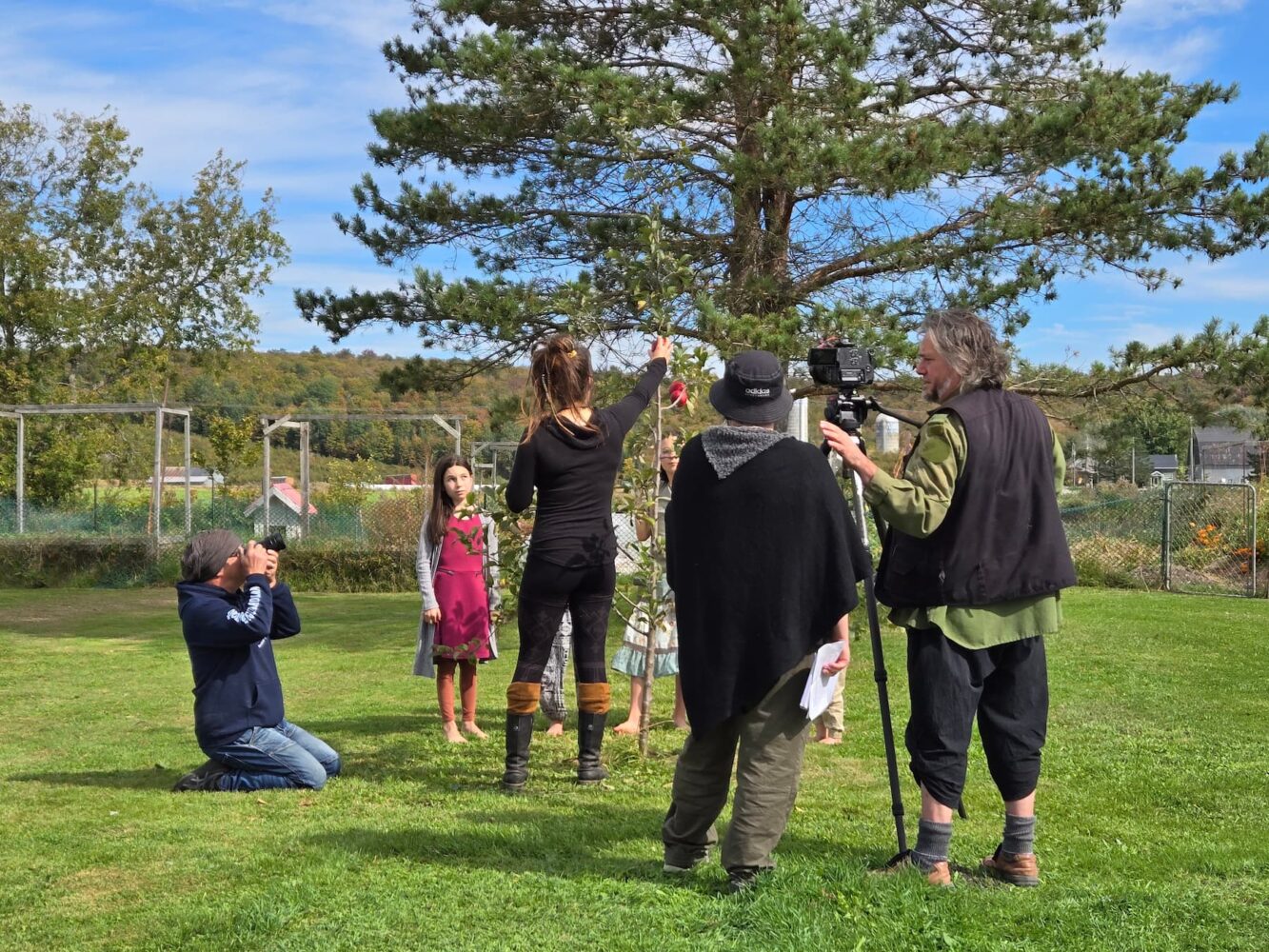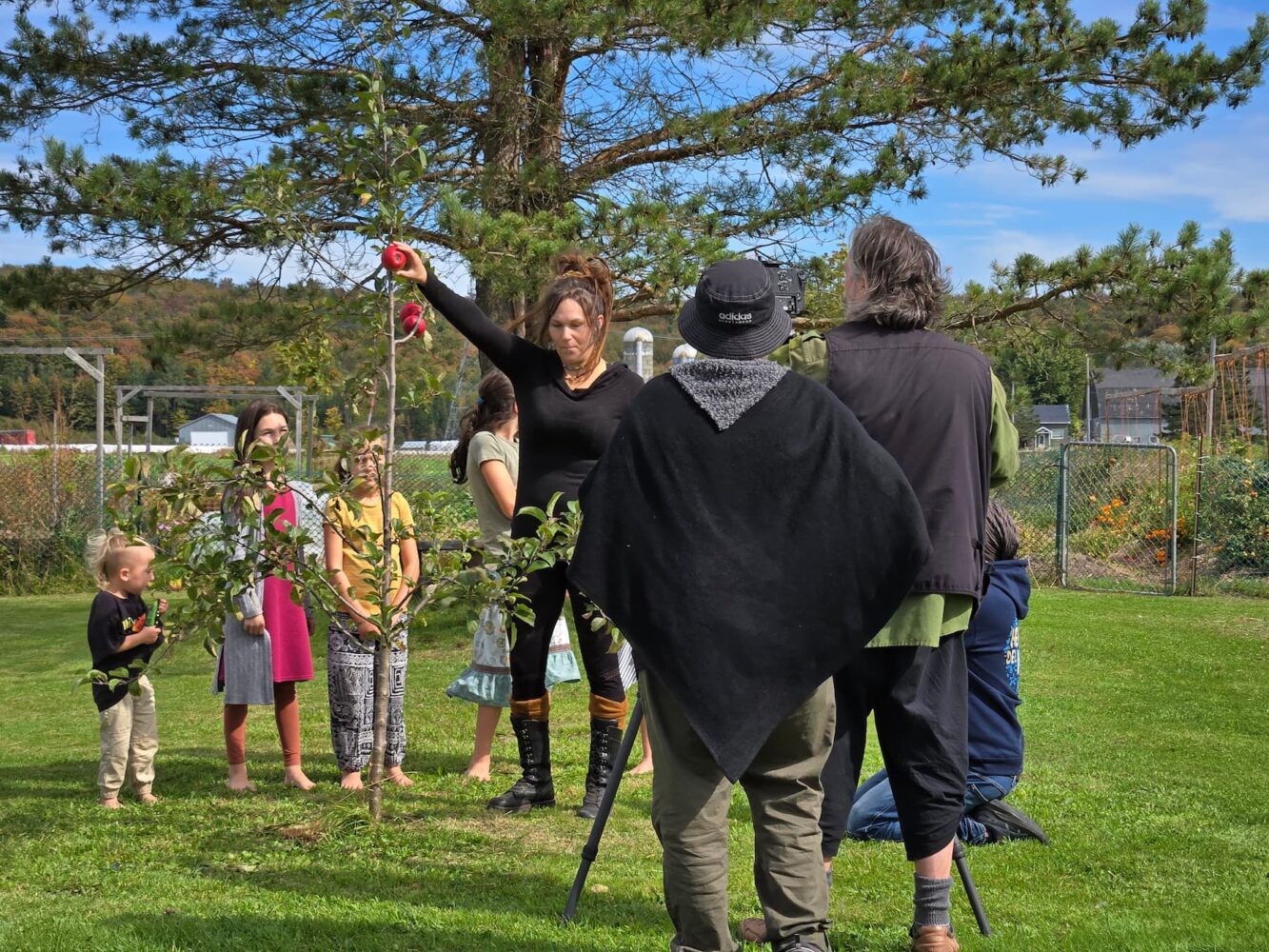 Nous avons aussi de grands jardins avec plusieurs variétés de légumes et les enfants participent à toutes les tâches avec nous. Suivant les principes de permaculture, nous avons planté plus d’une trentaine d’arbres et d’arbustes fruitiers au cours des 4 dernières années.
