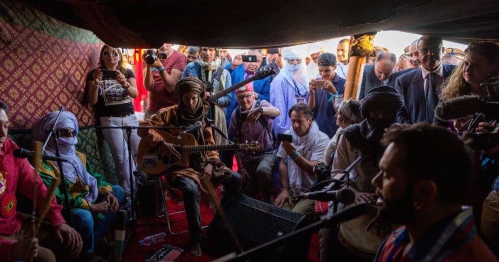 Projet interculturel de dix jours réalisé dans le désert du Sahara au Maroc avec RedTail Spirit Singers et Génération Taragalte.