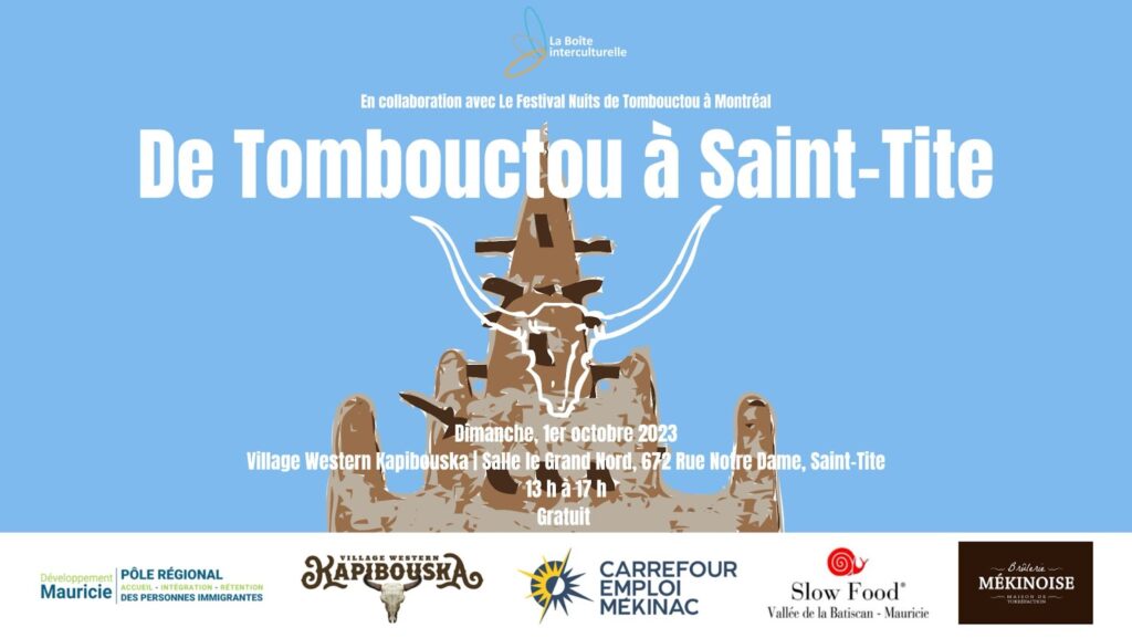Avec ce nouveau projet, La Boîte souhaite offrir aux citoyens de Mékinac et des régions avoisinantes une opportunité de découvrir la richesse de Tombouctou, son histoire, ses traditions colorés, son héritage culturel et ouvrir une fenêtre sur un monde fascinant.